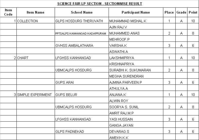 Hosdurg SubDistrict Science, Social Science, Mathematics, Work Experience, IT Mela 2010-11