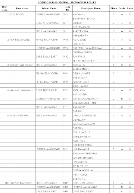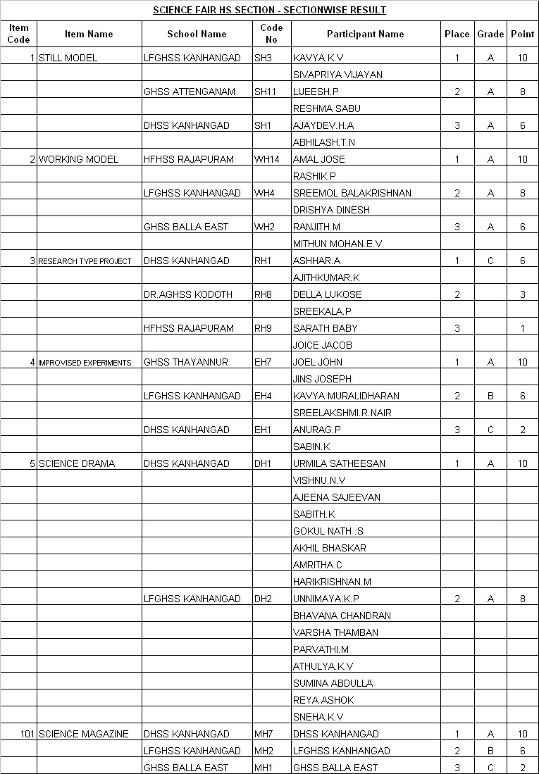 SCIENCE FAIR RESULTS(HOSDURG SUBDISTRICT)- NOV 2010 - HS
